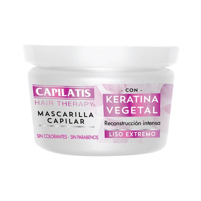 La Mascarilla con Keratina Vegetal, es ideal para cabellos muy dañados, tratados con color o alisados. La exclusiva línea de tratamiento CAPILATIS HAIR THERAPY ® CON KERATINA VEGETAL ha sido especialmente diseñada para recuperar la salud de las fibras capilares deterioradas. Normaliza la estructura de los cabellos extremadamentedañados o tratados químicamente y ayuda a mantener el alisado del cabello.