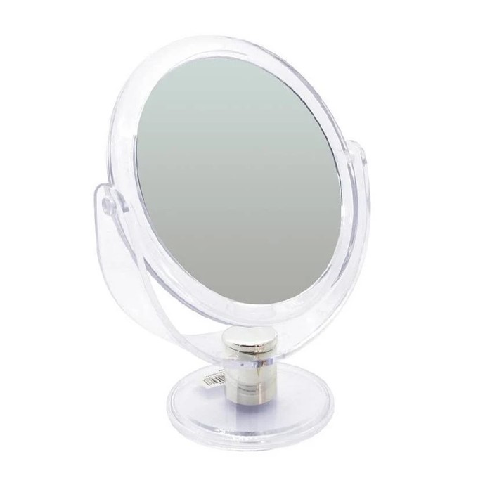 - ESPEJO REDONDO DE METAL Y ACRÍLICO DOBLE FAZ.