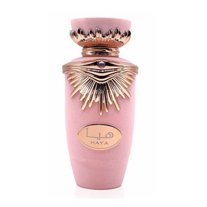 Haya de Lattafa es una fragancia de la familia olfativa frutal floral para Mujeres. Las Notas de Salida son champaña, fresa, naranja sanguina, rosa y naranja tangerina; las Notas de Corazón son gardenia, jazmín y orquídea de vainilla; las Notas de Fondo son sándalo, ámbar y castaña.