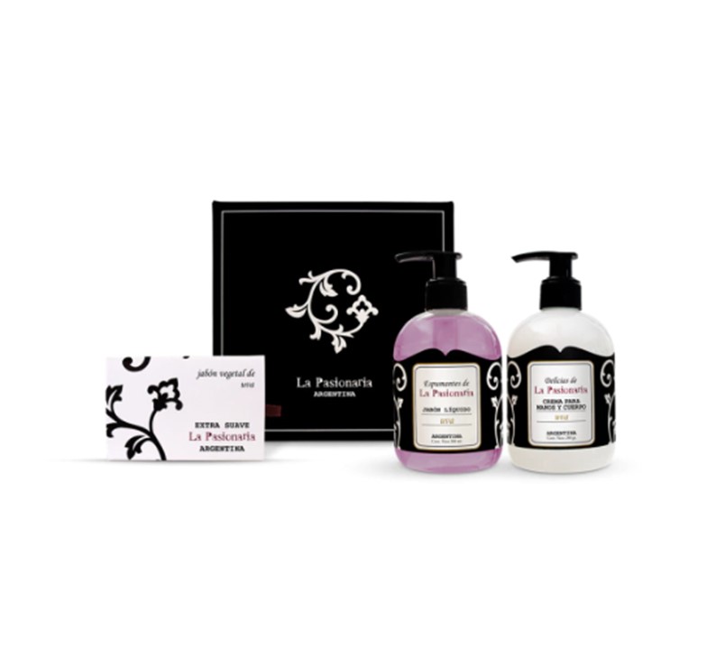 Caja Estuche de regalo Uva Jabón Vegetal 90 grs de Uva, Jabón Líquido de Uva, Crema para manos y cuerpo de Uva.