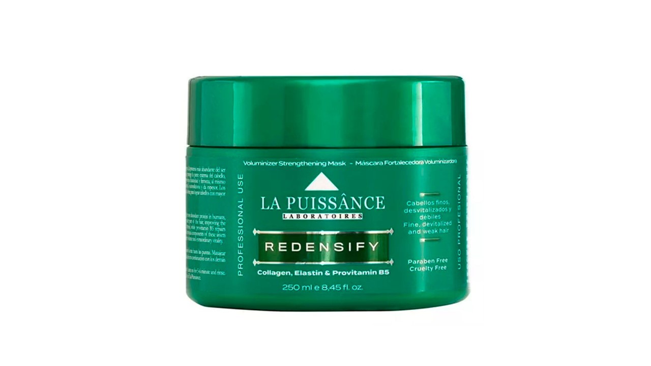 Su combinación de ingredientes activos hidrata y proporciona resistencia y plenitud al cabello. Su exclusiva fórmula de última generación contiene altas concentraciones de colágeno, la proteína más abundante en el ser humano, fusionada en un complejo multifuncional que fortalece la fibra capilar y protege la parte externa del cabello, mejorando la vitalidad de los folículos. La elastina, otra proteína vital para el cabello, proporciona elasticidad y firmeza, mientras que la provitamina B5 repara los daños, reduce la formación de puntas abiertas, acondiciona y aumenta el grosor de cada hebra.