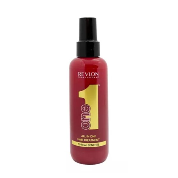 Revlon Professional UniqOne All In One Treatment ofrece un tratamiento capilar que cumple con un rendimiento profesional excepcional. En particular, este producto se convierte en un auténtico aliado para conseguir un cabello sano, brillante y sedoso que nunca. Su fórmula combina ingredientes perfectos con la capacidad de sumar 10 beneficios en un solo producto. En este sentido, este spray multiusos repara el cabello seco y dañado en profundidad, fortaleciendo la fibra y reduciendo la rotura. A su vez, acondiciona, desenreda, controla el encrespamiento e hidrata instantáneamente el cabello. Finalmente, facilita todo el proceso de peinado, dejando el cabello visiblemente más sano y suave al tacto. Uno de los toques especiales de este spray es el hecho de que su icónica fragancia permanece en el cabello por mucho tiempo. En particular, sus notas que recuerdan a un elegante ramo de flores blancas y verdes se vuelven fácilmente inconfundibles. Además, este spray también cuenta con una composición enriquecida con innumerables beneficios para el cabello. Es decir, el ciclopentasiloxano proporciona una sensación suave y sedosa al cabello. Por otro lado, el Pantenol, una vitamina nutritiva con potentes propiedades calmantes y fortalecedoras, contribuye a mejorar el brillo del cabello y previene las puntas abiertas. Además, este componente es capaz de penetrar profundamente en la fibra capilar, protegiéndola desde el interior. Por último, los filtros solares protegen el cabello de los daños solares y de los rayos UV, evitando así que se seque o que su color se desvanezca. En definitiva, este spray promueve instantáneamente resultados profesionales en todo tipo de cabello. Estos, a su vez, se vuelven visiblemente mucho más sanos, cuidados y protegidos. Además, todo el cabello adquiere así un nuevo aspecto lujosamente brillante, suave y totalmente revitalizado.